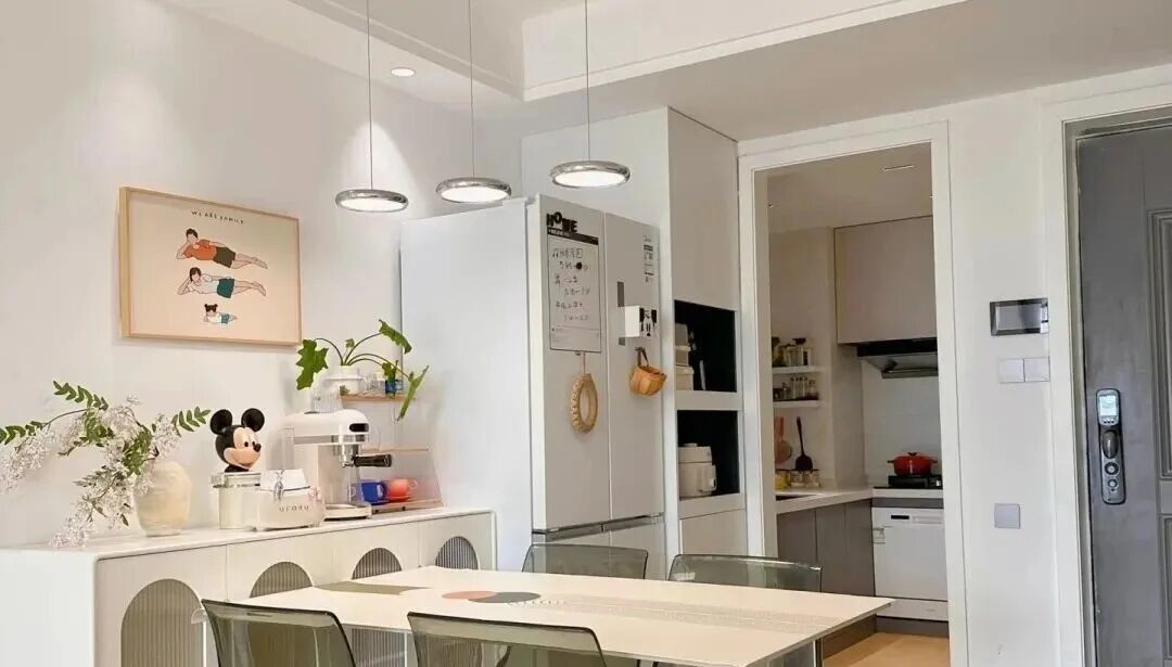 网友@小树:我家冰箱直接挪到餐厅,跟鞋柜连体,厨房台面一下就宽敞了。餐厅、玄关都能成为“冰箱基地”。冰箱靠近餐厅,拿饮料、取零食超顺手,做饭时跑一趟也能接受,避开阳光直射和暖气片,散热好更省电(两侧留10cm缝隙就行)。